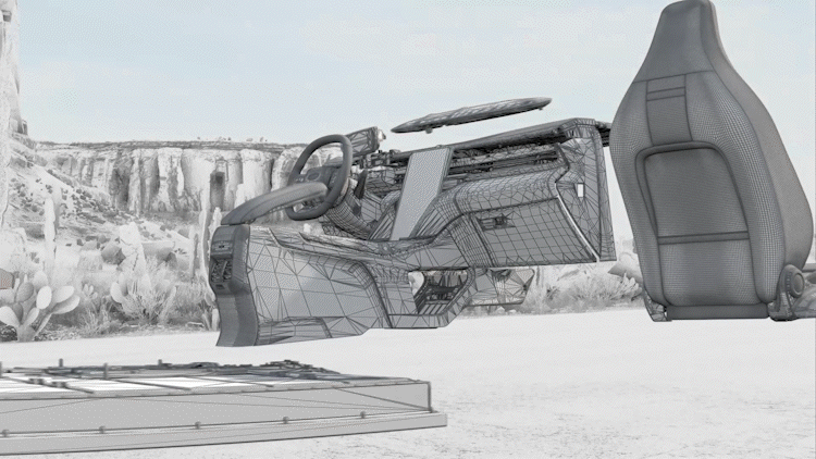 The project required several distinct aspects which each required their own pre-production approach. We began with prepping the vehicle and working to decide which components of the vehicle should be shown in the build-up. We also simultaneously began refining the Unreal environment to be suitable for use in 4k animation outputs as the original environment was developed for a pixel-streaming application and required numerous levels of refinement for the animation outputs. Working in tandem with the environment, we worked with the Director and Agency to refine storyboards and placement of cameras throughout the virtual environment. Last, but not, least we also began setting our sights on the live-action shoot and understanding how we could help guide it to capture the necessary elements to make our work more efficient.
