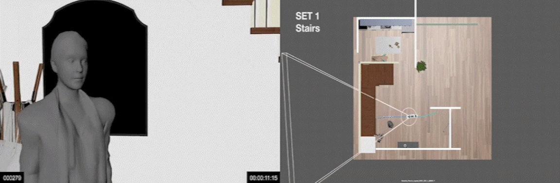 The shoot had multiple challenges to overcome: we had to choreograph the talent in the living room, track and memorize it, and then flip the action to be performed in the wildflower field. These moves also had to sync up perfectly. With a motion control camera, we were able to repeat the exact move multiple times and overlay the action. Keeping everything in constant motion allows the viewers to drift across the room; it allows us to cut nicely and seamlessly stitch it all together. A combination of clean-up techniques and clever angles keeps the camera out of the reflections. Doing as much as possible in-camera allowed for minimal cleanup in post.