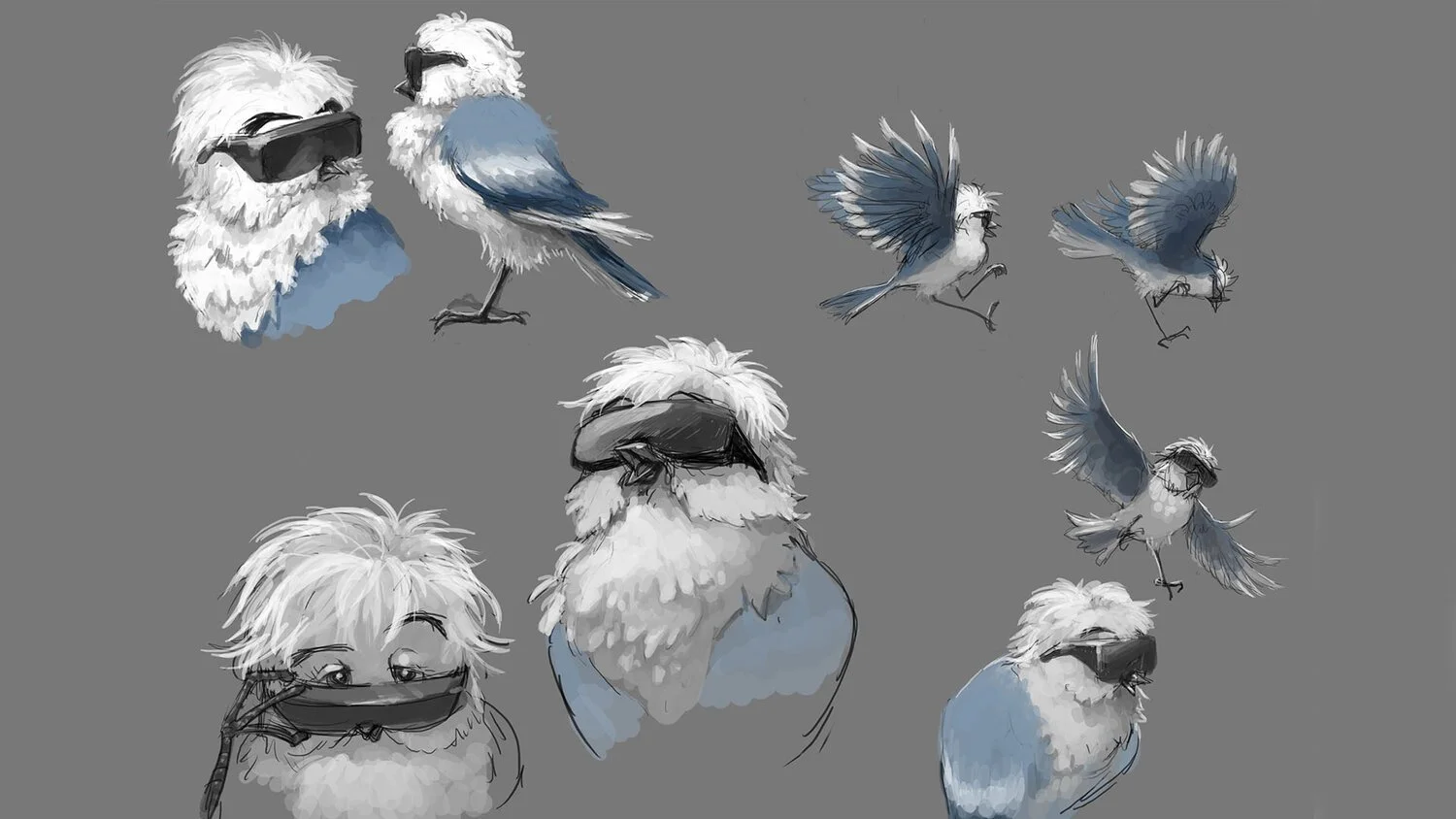 Our pre-production team had to familiarize themselves with bird anatomy to the point we where looking at bird skeletons, muscles and exactly how both Andy and Cathy would move. In order to bring the birds to life we worked closely with our storyboard artist and concept artists to bring personality and character to the narrative. The agency provided us with a basic script and from there we had complete creative carte blanche to work with our in-house Creative Director and Live action director to define the flow of the shoot and CG.