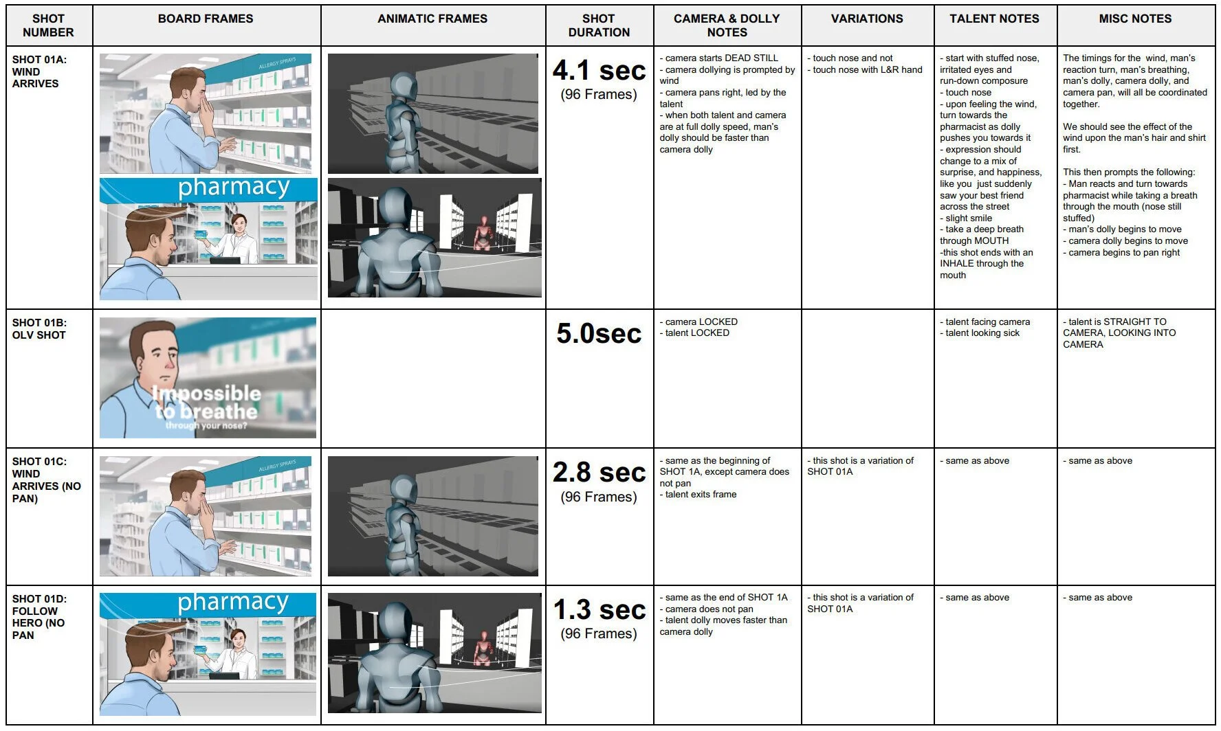 Detailed storyboards helped us define the overarching narrative and creative vision to the client, agency and production crew. Working through these alongside Director Jason, the team built out detailed descriptions of each scene along with clear visuals that described the camera movement, talent performance and overall motion in each shot.