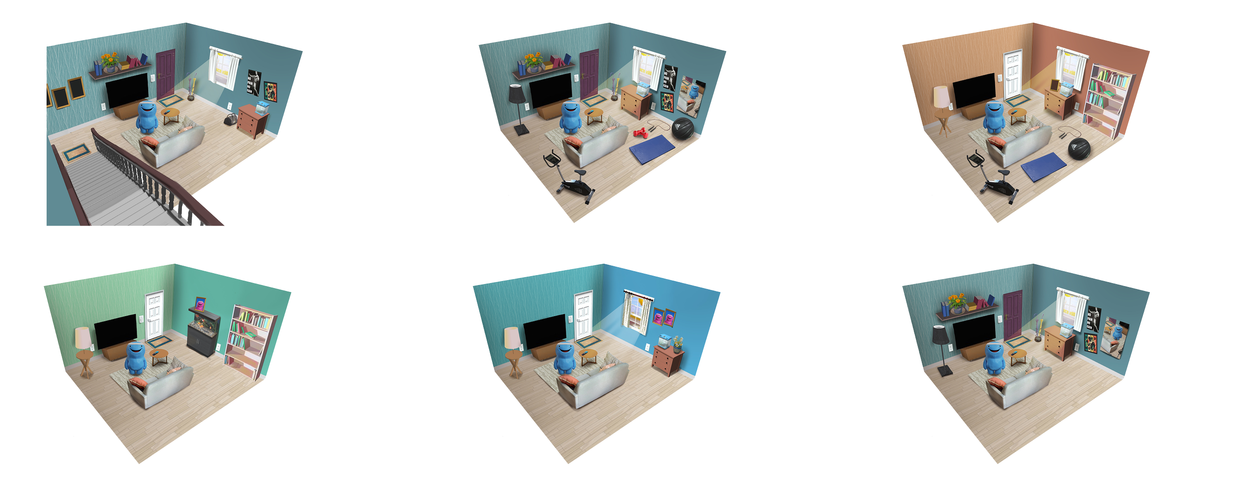 Building on the assets created for the previous campaign, our team dived into designing the inside of Will’s home. Naturally, he needed the essentials: a massive television and a sofa you could sink into. But the real fun was everything in between. What colours would he choose for his space? What kind of rug would suit him? And, of course, where would someone like Will keep his legendary collection of headbands?