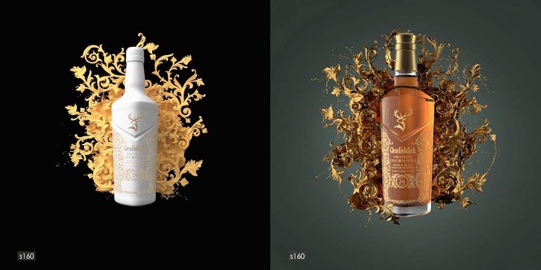 We collaborated with Purple Creative Agency to reveal more Glenfiddich whiskies: the 18 Year Old, the Gran Reserva, and the Grande Couronne. Last year, we helped launch the whisky brand's new flagship packaging, which was created by Here Design. The distinctive suite of images were created entirely in CGI, combining the very latest VFX technologies to help convey the unique provenance of each product. The production approach and CGI pipeline was tailored to each individual concept, whilst still keeping a consistent visual language across the campaign.