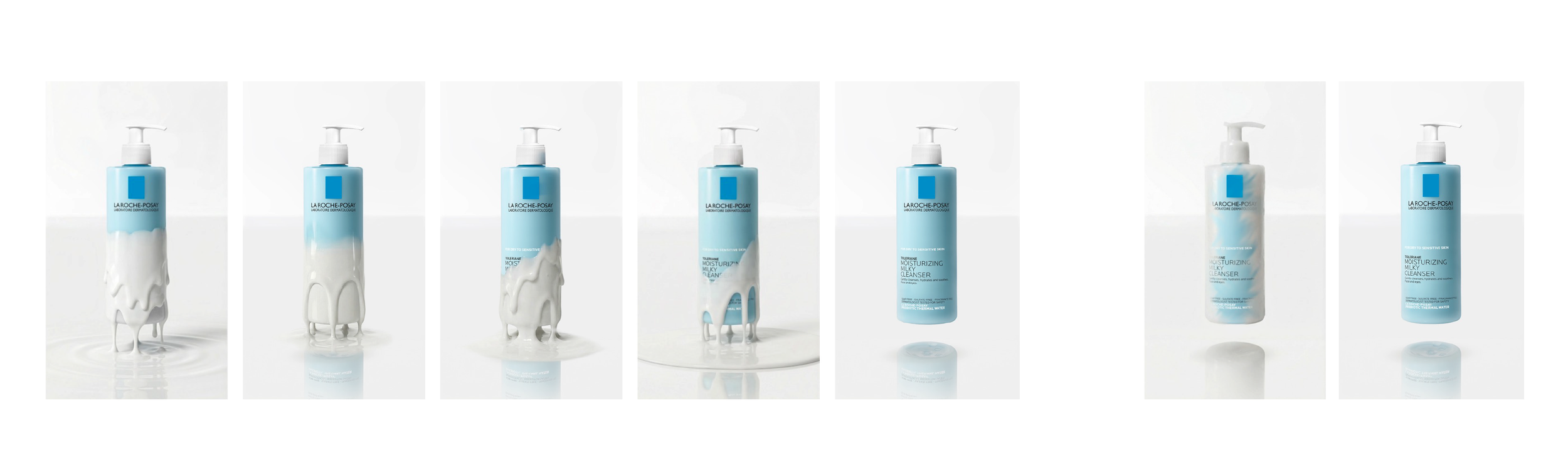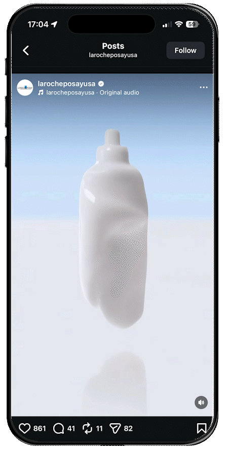 We utilized high-resolution product photography to ensure the La Roche-Posay labeling and branding were perfectly sharp and legible as the bottle formed. Our compositing team fine-tuned the reflections on the bottle's surface to mimic the clean, bright environment established in the opening shot. The result is a seamless, high-impact social media asset that communicates the product’s core benefit, pure, milky hydration in a visually captivating way.