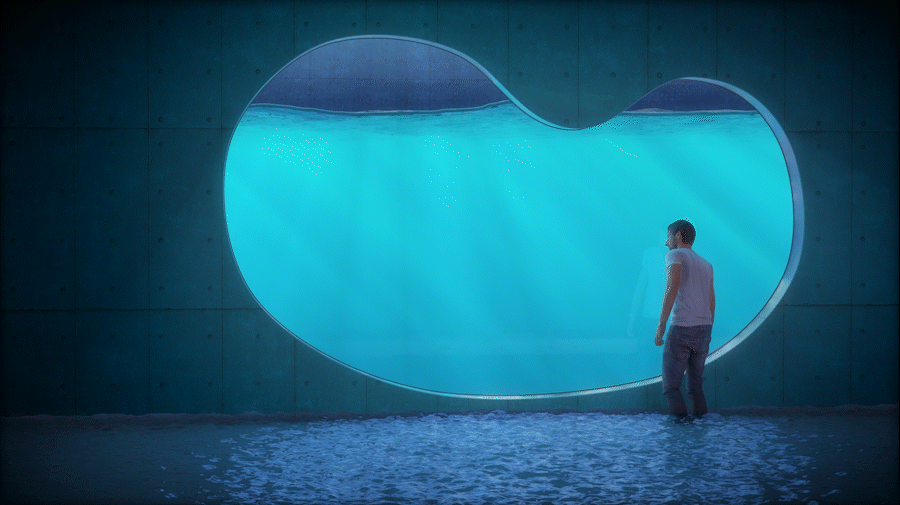 In our pitch, we created tests of the cinemagraphs. The test focused on the water and lighting of the campaign: a man looks at the moving water inside the tank, standing on the floor that is completely flooded. Our test was instrumental to our winning the work.