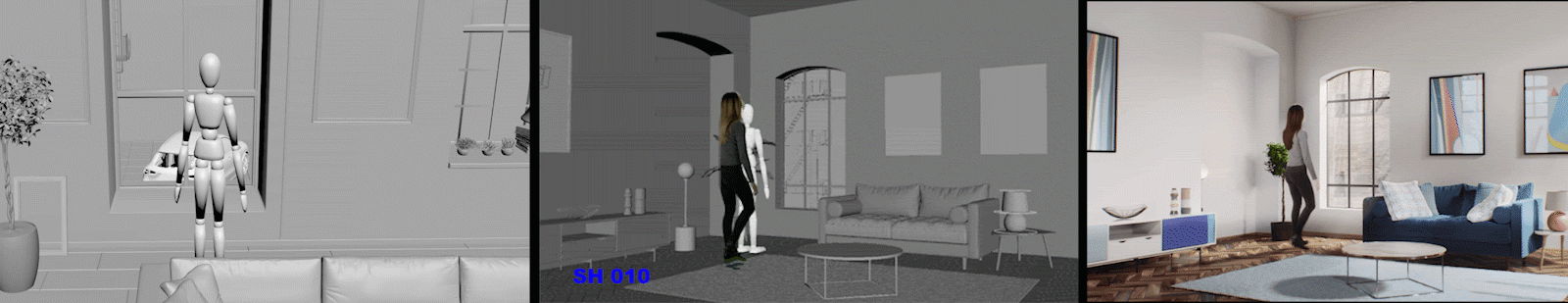 Our opening scene establishes the film's design language. In the living room of a young professional's apartment, we introduce the audience to a personality that lives and breathes art. As the room animates and shifts to become more comfortable and luxurious, we grab attention straight away.