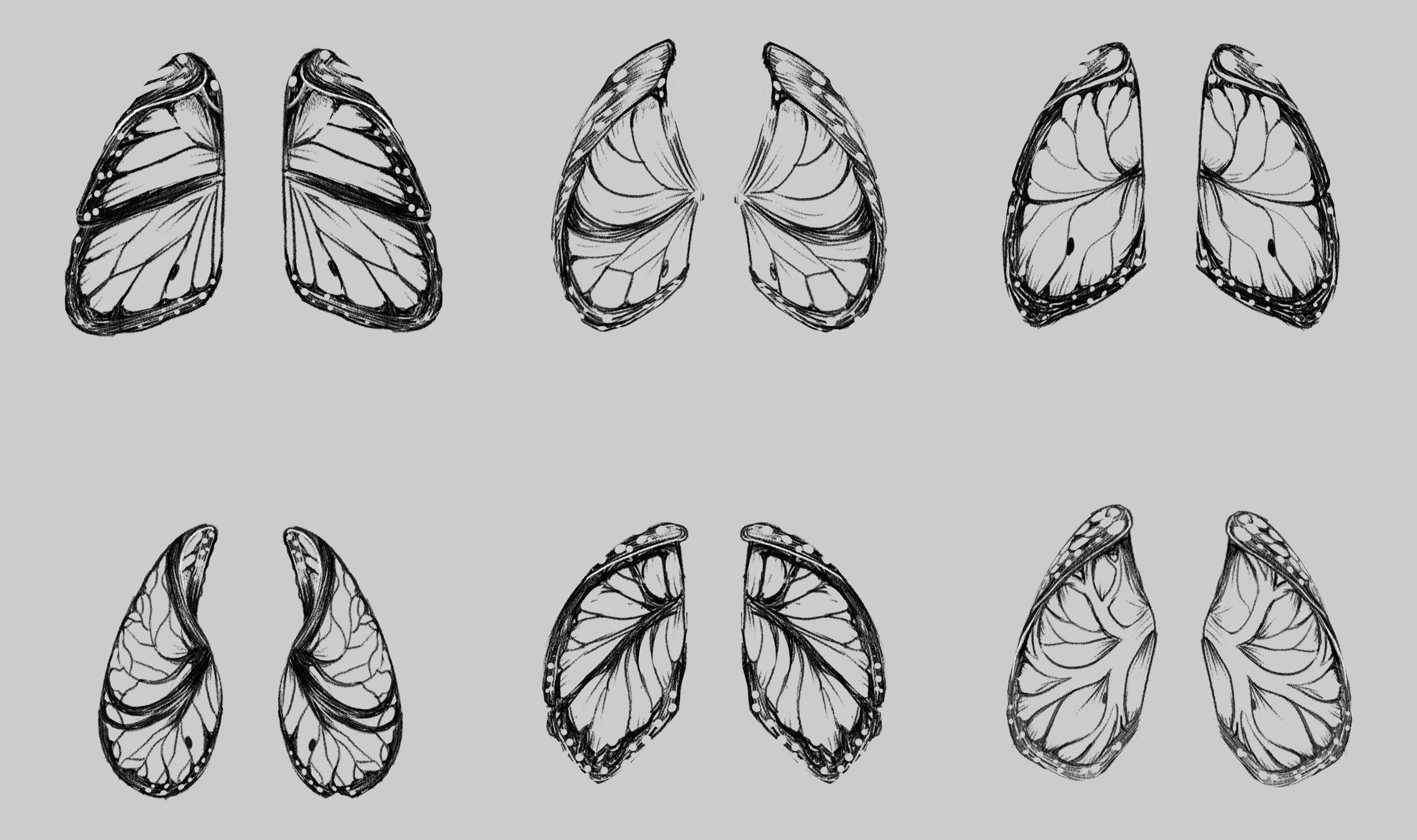The process started with researching the shapes and forms of a butterfly’s wing, alongside the makeup of the human lung. Each has its own defining features, both in their anatomical design, but also in how they move and transform. The challenge was to merge both these elements in a way that was immediately understandable to the viewer, and both the still and motion elements really conveyed the breathing of the lungs with the delicate and beautiful details of the butterfly.