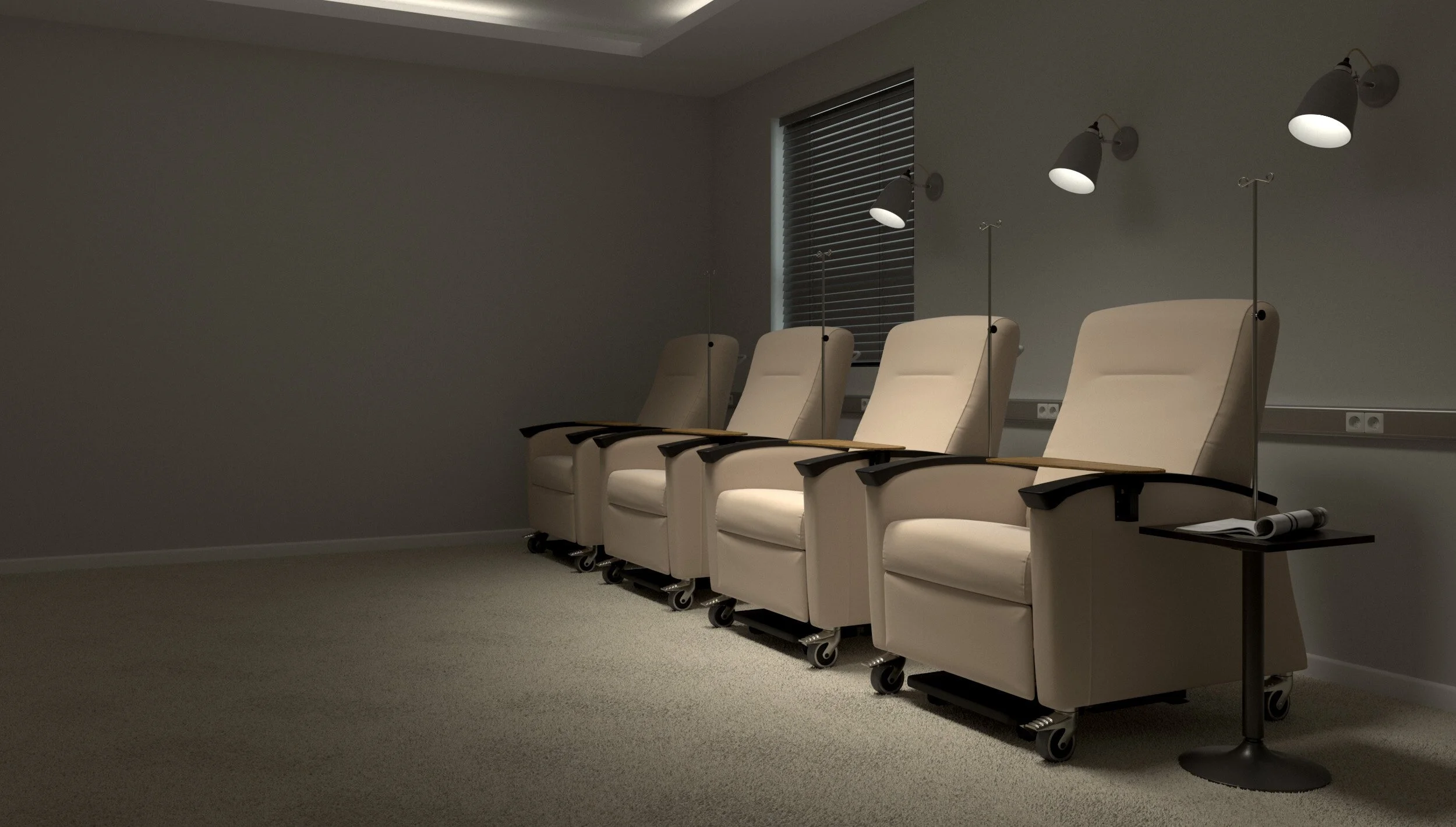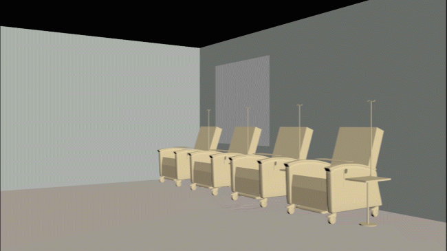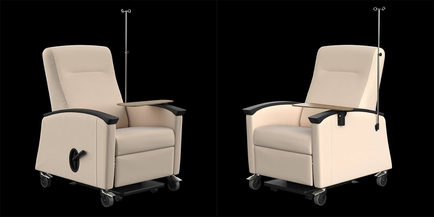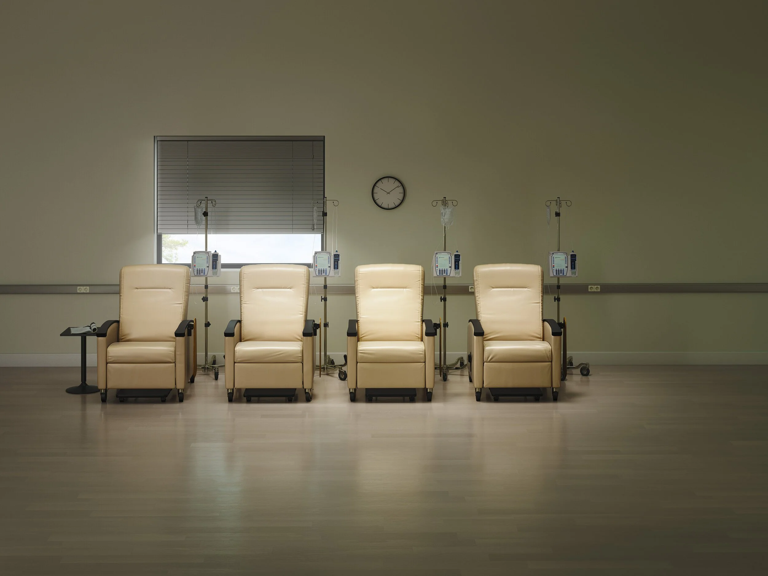 Our art directors worked closely with the client to design the space, with cultural and aesthetic considerations for both the United States and global markets. The hero chair was the most crucial part of the campaign's storytelling; it would be the consistent focus whether in the IV room or the patient's home. When designing the chair, we considered the safety and comfort it would provide to patients most likely experiencing weakness and discomfort.