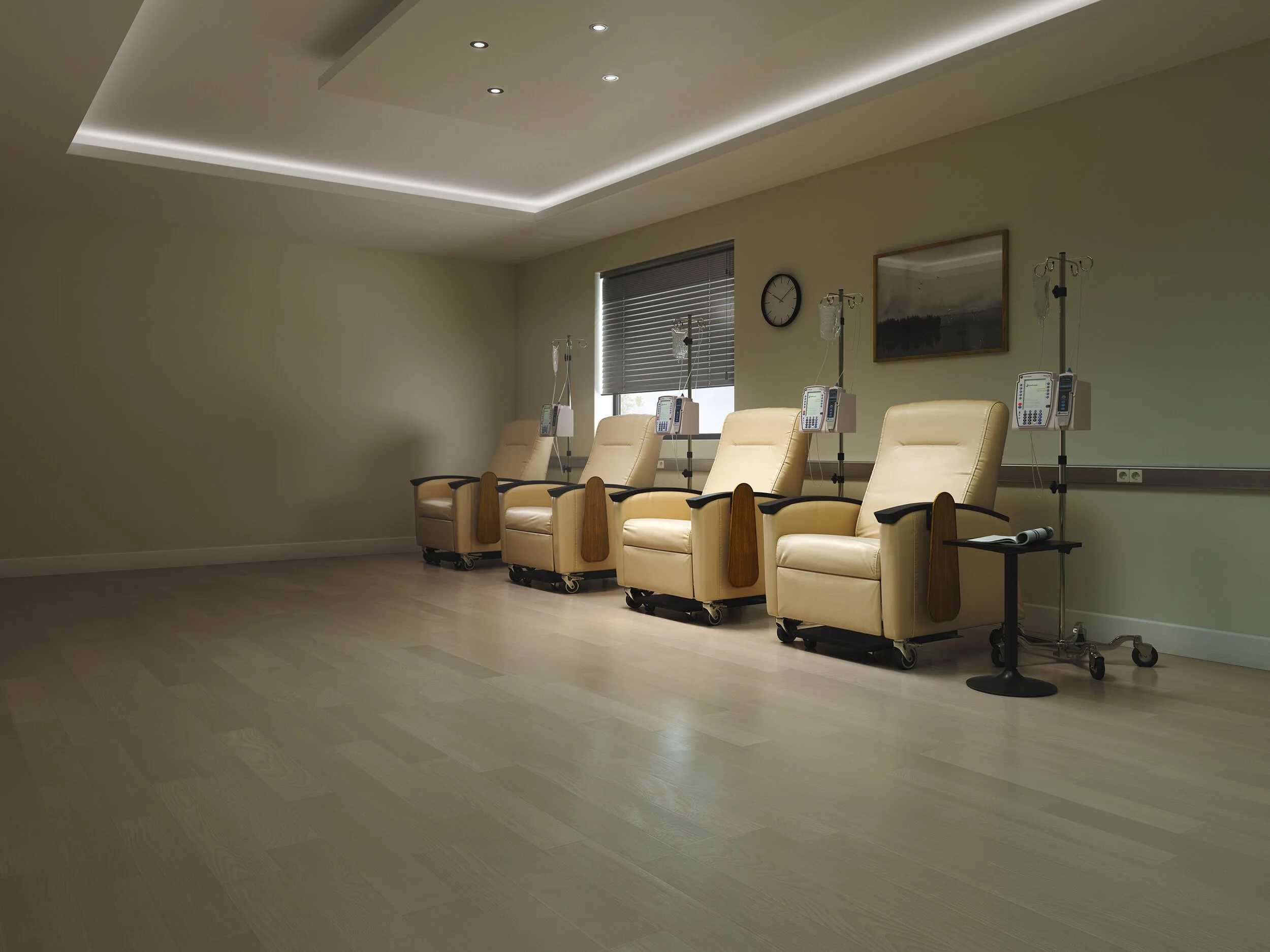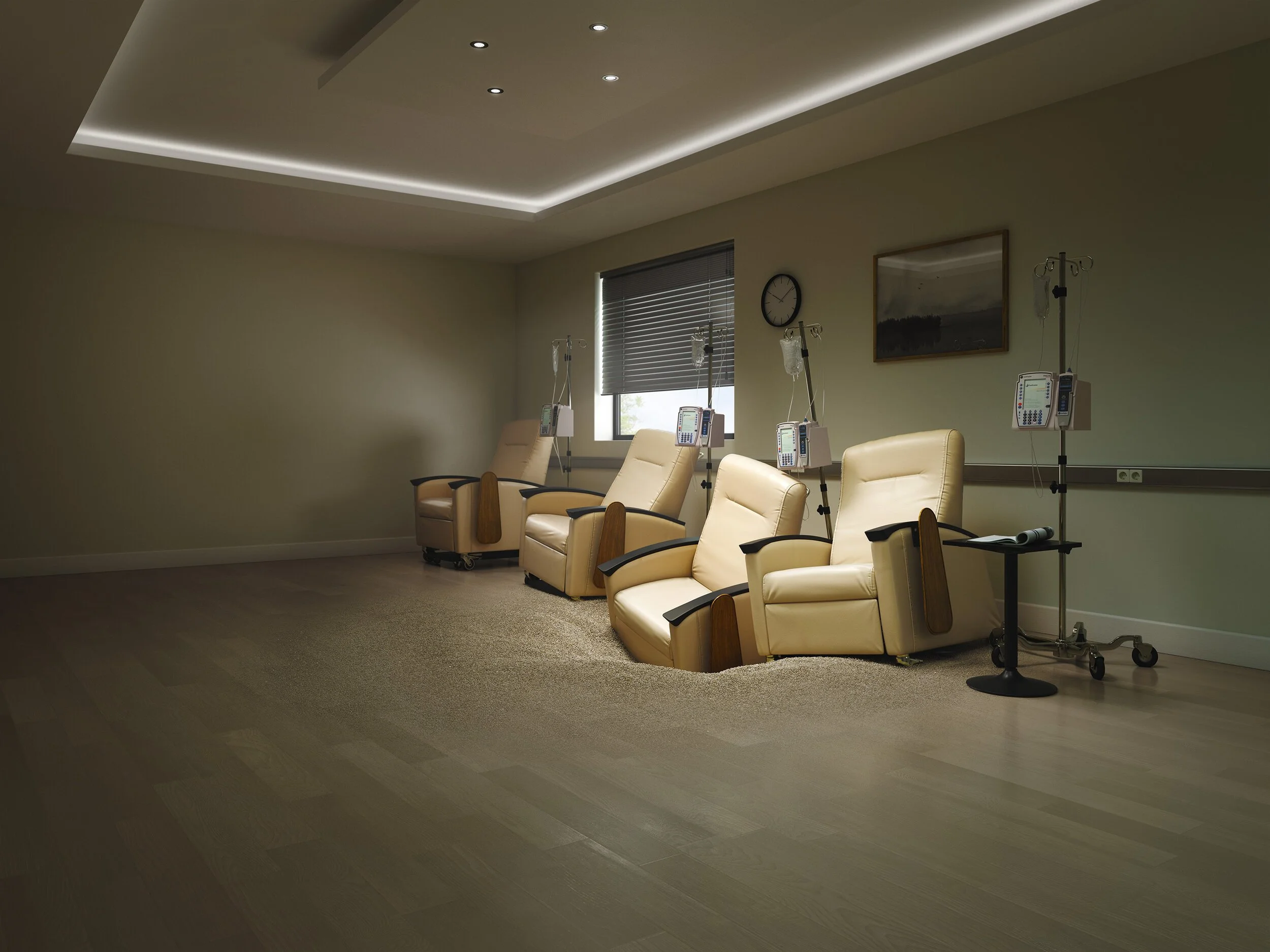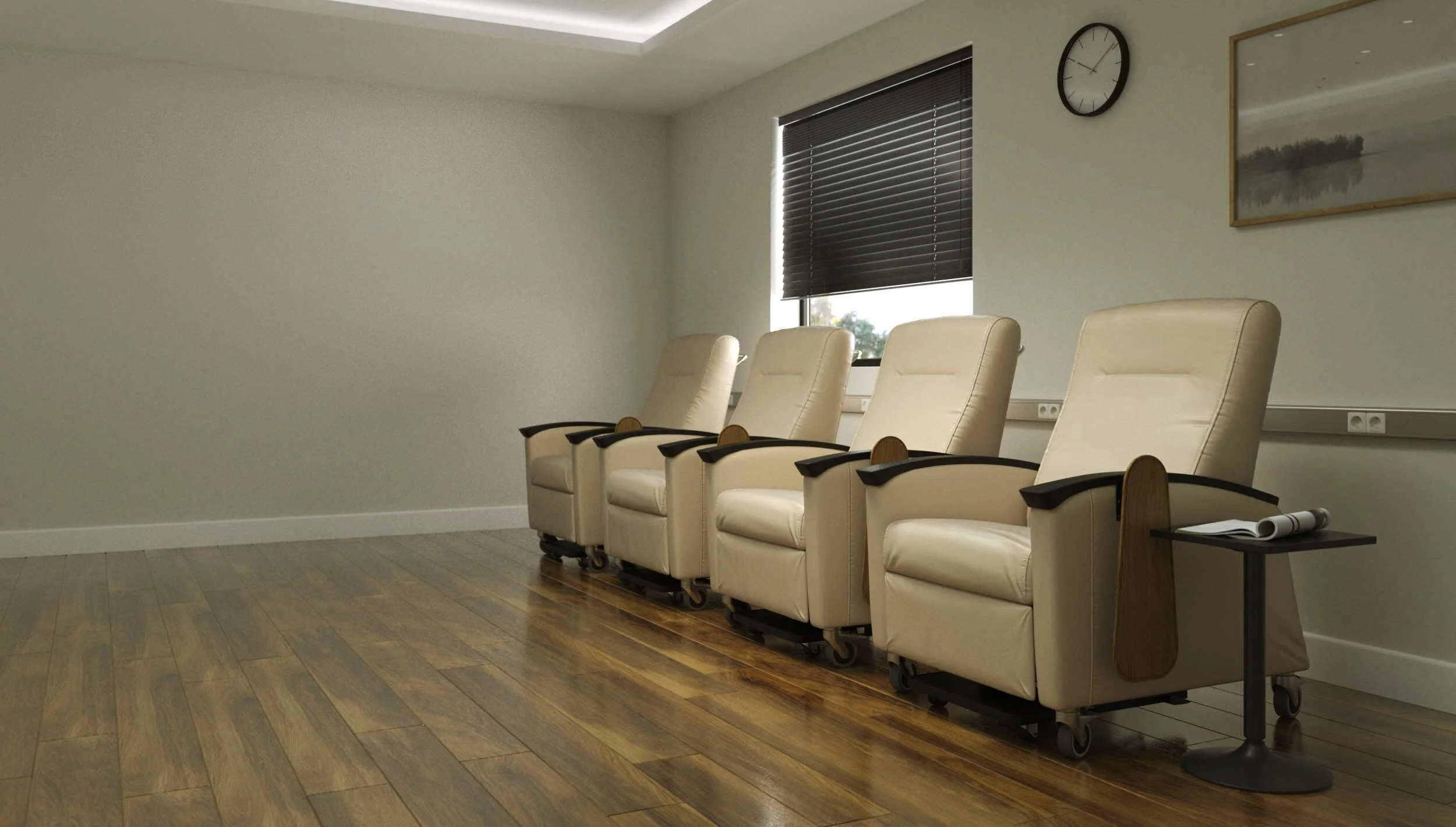 Our art directors worked closely with the client to design the space, with cultural and aesthetic considerations for both the United States and global markets. The hero chair was the most crucial part of the campaign's storytelling; it would be the consistent focus whether in the IV room or the patient's home. When designing the chair, we considered the safety and comfort it would provide to patients most likely experiencing weakness and discomfort.