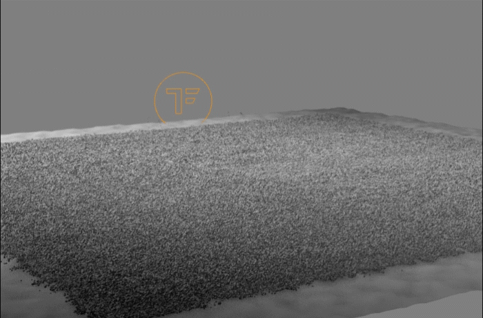 We did some animation tests early on in the treatment phase. We created a particle simulation that could be applied to different floor surfaces. We could control the fluidity and speed of the effect, and how it fractures.