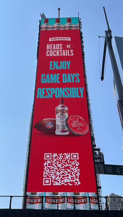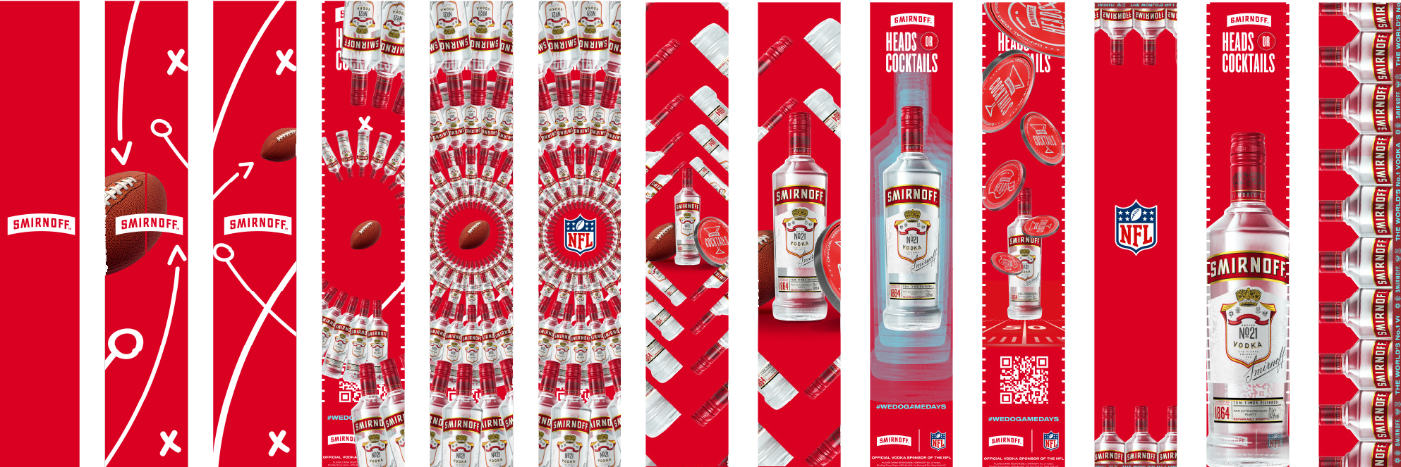 Our friends at Taylor Strategy came to us with a rapid-fire request! They needed help designing and creating motion graphics for a Times Square video billboard to promote Smirnoff’s “Heads or Cocktails'' campaign where participants could participate in the ultimate coin toss and win prizes like Smirnoff products or NFL merch on the countdown leading up to the first NFL game day.