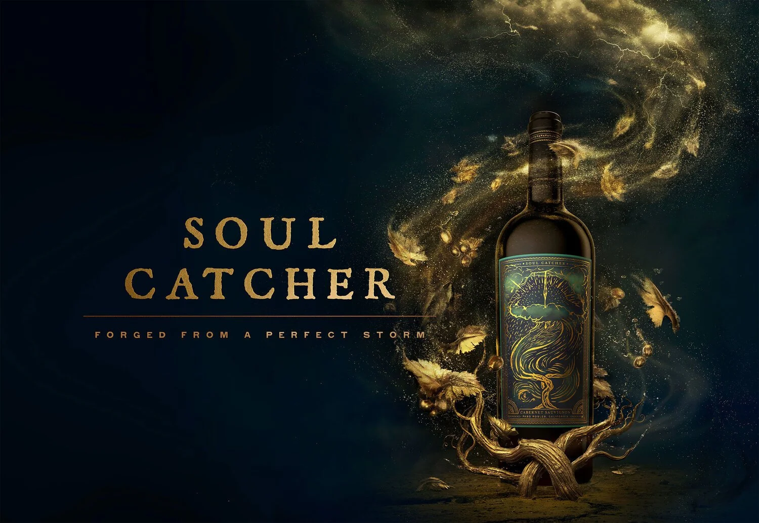 With High Wide & Handsome, an LA-based agency, Constellation Brands U.S. called on us to create key art and a visual style guide for their Soul Catcher Cabernet Sauvignon. They wanted our art to "forge a perfect storm", much like the flavor profile of the red, inspired by the uncertain weather in Paso Robles, where each bottle hails from. The notion of nature’s elements contributing to every bottle can be seen in the wood, grapes, vines, and weather systems as they spiral up around the bottle.