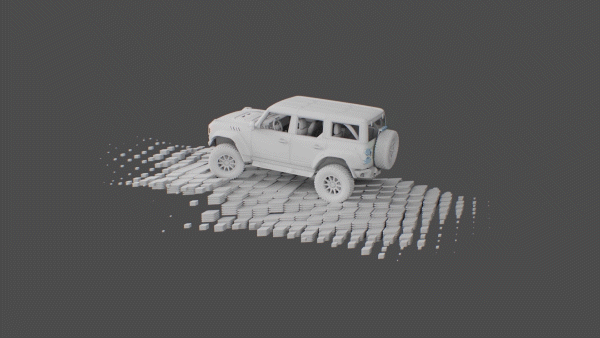 The end result is an abstract yet grounded animation that challenges visual expectations and highlights the vehicle’s strength and presence.