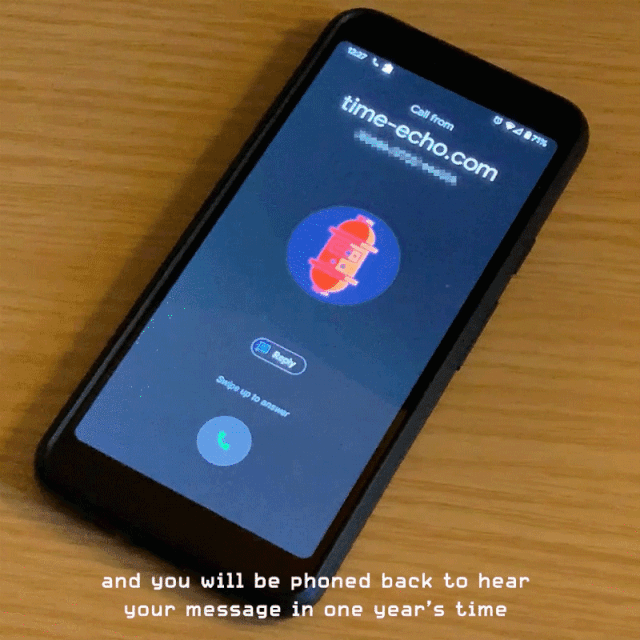 Time Echo is a WebGL experience that allows you to enter your phone number and record a message to express anything you need to externalize from this year. This message is for you alone. In one year's time, you will be called and your message played back to you.
