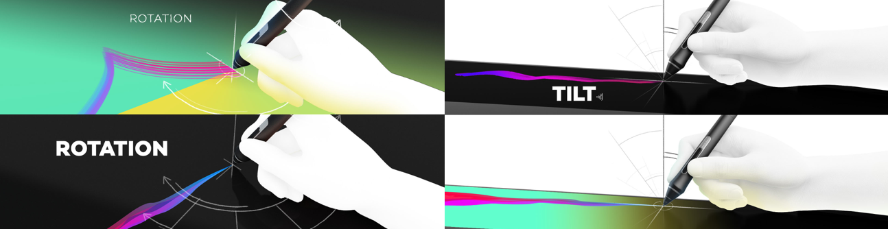 The brush graphics were designed to visually stand out against the tablet, having an element of complexity while being crisp and clear. We wanted the brushes to look magical, with the movement mimicking calligraphy on paper, illustrating how natural it feels to use Wacom.