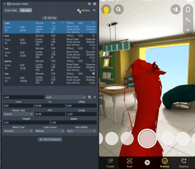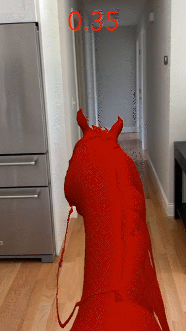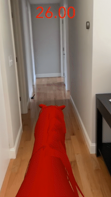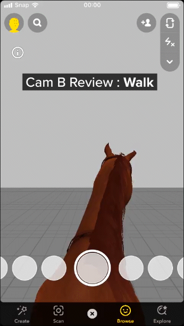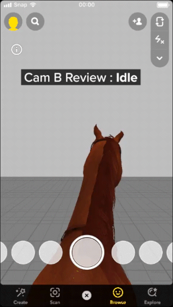 We created an interactive lens. When you stand still, the horse is idle; when you walk, he trots, and as you increase speed, the horse gallops. Though Snapchat removed the functionality to show users how fast they're going (a safety measure), we were able to use other resources to recreate what the accelerometer would do.