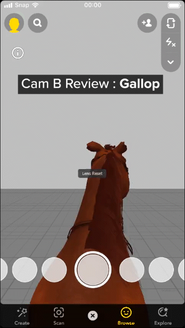 A lens so robust has never been done before on Snapchat, which has an 8 megabyte limit. We found efficiencies to make the horse as small as possible, in order to maximize quality. We sacrificed the back half of the horse, focusing on creating as realistic a horseback rider POV as possible.