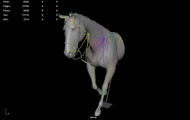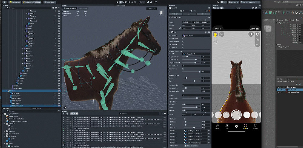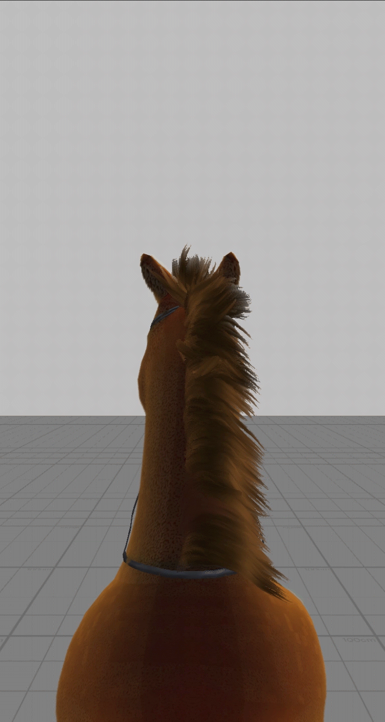 Our horse's mane was our main focus, as it takes up most of the screen. Photoreal hair movement would be a challenge, but we strived to make it happen. Each strand of hair was a polygon of data, and each one would bring us closer to Snapchat's space limit. Our great 3D artists solutioned this problem by treating the hair like a texture, rather than geometry. This hair simulation allowed for movement to achieve the desired higher quality.